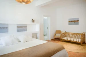 - Inspirée par la lagune de Ria Formosa, la suite «Lagoa» dispose d’un lit de 180 cm (séparable en deux lits de 90 cm sur demande), d’un grand placard, d’un lit bébé et d’une salle de bain privative avec douche, évier, toilettes et sèche-serviettes électrique.