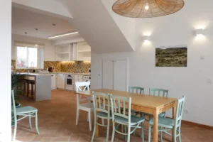 - La cuisine, entièrement équipée, comprend un grand frigo avec congélateur, une plaque à induction avec hotte, un four à air pulsé, un four à micro-ondes, un lave-vaisselle et un lave-linge. Des chaises pour enfant sont disponibles sur demande. Depuis le jardin arrière, vous apprécierez l’ombre matinale et le soleil de l’après-midi.