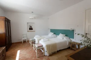 - Évoquant les fontaines de Alte, la suite «Fonte» propose deux lits de 90 cm (pouvant être réunis en un lit 180 cm sur demande) ainsi qu’une salle de bain privative avec douche, évier, toilettes et sèche-serviettes électrique. Une porte donnant sur l’extérieur permet de profiter facilement du jardin arrière.